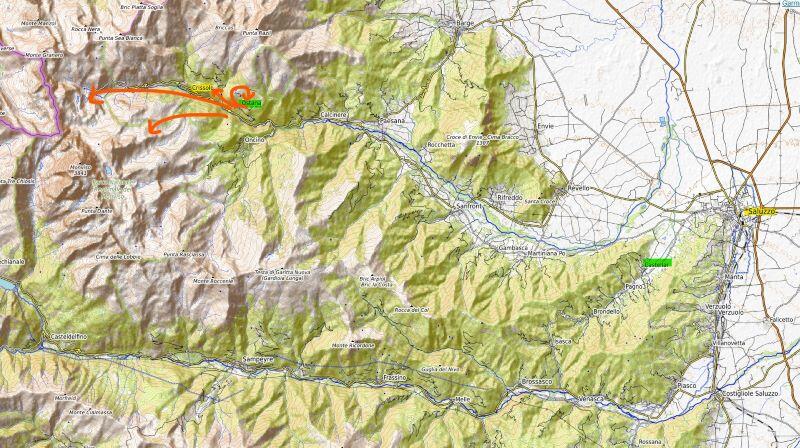 Jusqu’au fond de la vallée, nous sommes dans l’ancien Marquisat de Saluzzo. Pendant quatre siècles, les marquis de Saluzzo disputèrent aux Savoie la domination du Piémont, et le contrôle du passage des Alpes. La ville témoigne encore de ce passé glorieux, de même que certains sites exceptionnels comme le château de la Manta.